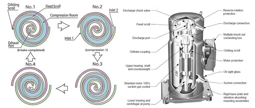 答: 渦旋式壓縮機摩擦少,高效率, 嘈音少, 機器寿命長. AquaCal 熱泵系列應用渦旋式壓縮機.