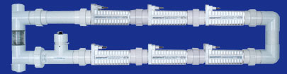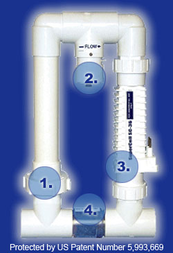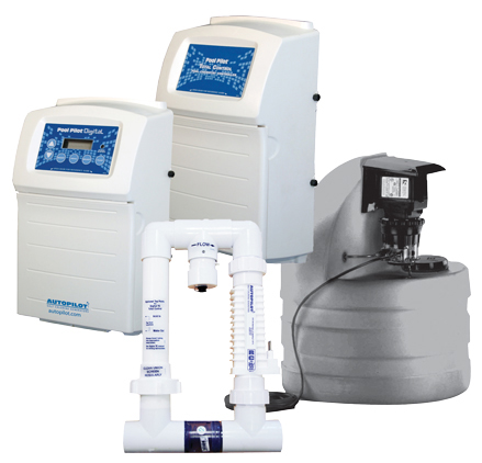 全控系統包括四大組件: 1) 數控鹽氯化器 2) 池水化学監控器 3) 化学劑儲液罐及泵 4) 多通組件(包括過濾器, 三感器,電极頭,單向閥)。