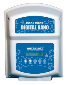 Digital Nano – 適用私家泳池 (可達82立方米)。自動顯示鹽濃度, 需加鹽量, 水温。可選單頭電极頭或加配三通頭。